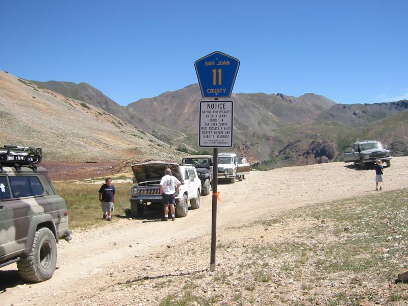 We intended to head to Minnie & Maggie Gulches, but we took a wrong turn after Silverton (despite Gary’s GPS), and ended up doing Corkscrew Gulch instead. Oh well, it was still fun. Dennis stalled just before the summit and had to be hauled by Gary to level ground at the top. Landon overheated just a few feet prior, and stopped to cool down while we waited for Dennis. I (Obi-Wan) really appreciated my fuel injected engine, even if it meant not driving my FSJ